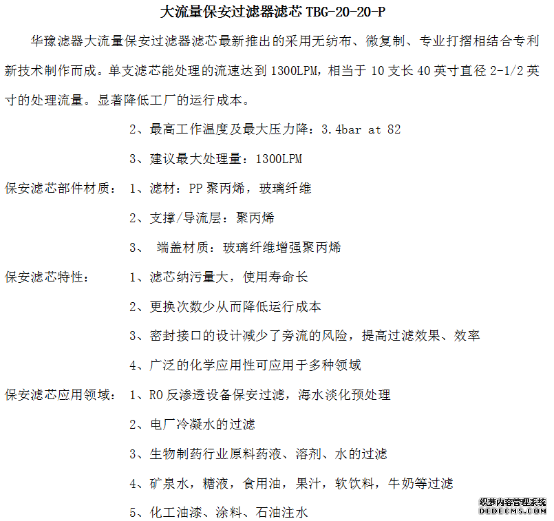 大流量保安過濾器濾芯TBG-20-20-P