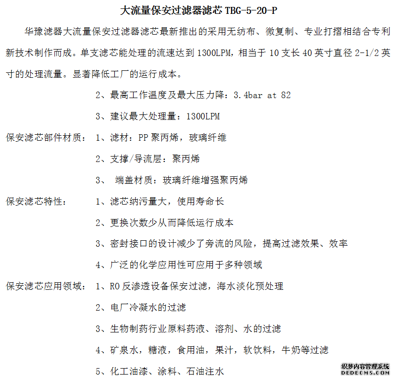 大流量保安過濾器濾芯TBG-5-40-P